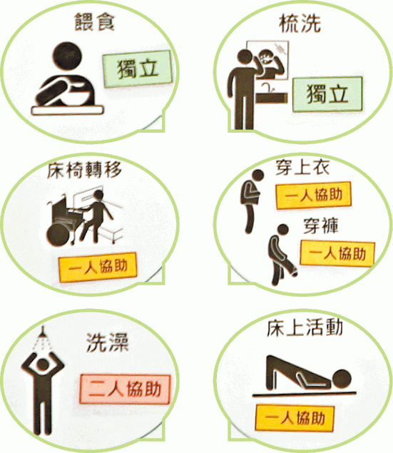 鄭慧慈指出,以往職業治療師在評估病人活動能力時,通常只會記錄在病人病歷中,病人和家屬不易查看,但新計劃在床頭設標示圖,以紅、黃、綠三色表示病人活動能力,並會按病人進展持續更新,令病人和家屬對病人活動能力一目了然。鄭又指,團隊為計劃特別製作圖文並茂的教育小冊子,家屬學習照顧技巧時更清楚易明。