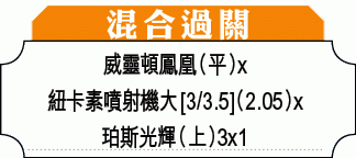 同日另一場前列大戰,由榜首的珀斯光輝主場對阿德萊德聯,光輝上仗作客賽和墨爾本城,贏形勢但失分,但以光輝近6場主場取5勝1負的強勢,對阿聯可收復前失,讓平/半取上盤。(球賽編號:星期三3;now639及有線655台今日7:00pm直播)(此場設「球員—特別項目」及「首名入球」投注)。另一場紐卡素噴射機主場對中岸水手,水手前仗挫墨城後,上仗亦賽和獅吼,連續四場先開紀錄,加上噴射機亦具入球能力,中位數[3/3.5]「大」可串。(球賽編號:星期三2;now639及有線655台今日4:50pm直播)(此場設「球員—特別項目」及「首名入球」投注)