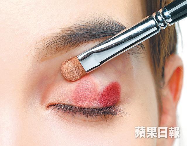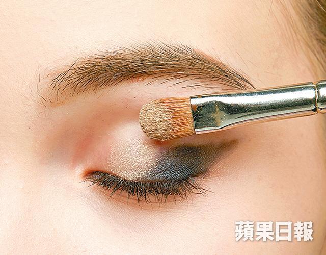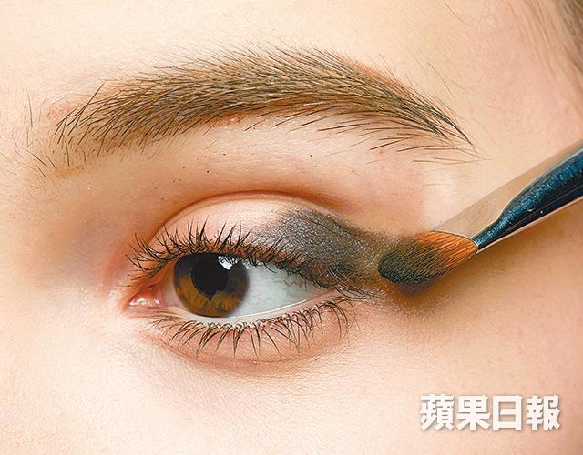 所謂的「川」字畫法,就是頭尾兩筆較長,中間那筆較短,同樣的規則可以應用在不同顏色的眼妝之上。例如這個就以一深一淺眼影組合而成,深色的眼影畫眼頭和眼尾,淺色的畫在中央位置,令眼睛即時看起來大了不少。