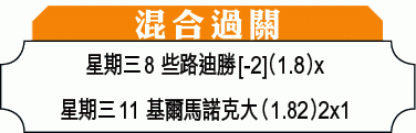 基爾馬諾克近期在地頭錄得五連勝,但他們對上兩輪聯賽主場勝仗,都有失球出現。面對格流,中位數開[2.5球]的「大」可期。