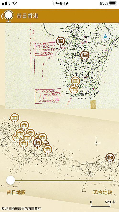 【本報訊 】地圖一向是尋覓路線的好幫手,亦可以成為讓人重溫香港昔日面貌的時光機。地政總署2014年於地圖應用程式推出「昔日香港」主題,將130年前的香港島地圖與今日地圖作對比,加入舊相片和地標,如昔日挑着擔挑工作的婦女、指揮交通的交通督導員和位於環球大廈現址的舊郵政總局一一呈現在舊照中,今年初署方加入70年前的舊九龍地圖,令往日稱得上水深港闊的維多利亞港、已消失的海岸線重現眼前。