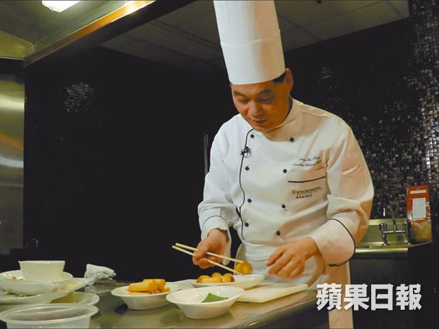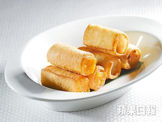 梁師傅說:「用麵包包起糕點炸香,可以做到表面香脆但內餡軟滑的效果。這道甜品亦可配搭不同糕點,軟糯的內餡有拉絲效果,女士們一定喜歡。」