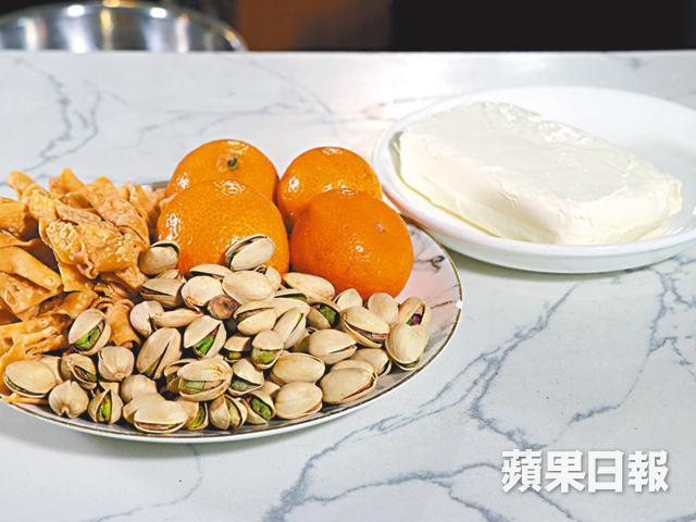 製法是先打拌忌廉芝士,再分別加入桔子汁、桔肉及小量桔皮,混合砂糖和檸檬汁等調味便可。其後,便可打碎蛋散,散落於碟上,擔起「餅底」的作用;最後便按個人風格,將「餅底」、忌廉芝士連同開心果等擺盤裝飾結合起來,創作出獨一無二的新派芝士蛋糕。他分享:「市民在家,可以隨心設計甜品的外觀擺盤,自由度較大,較易掌握。」