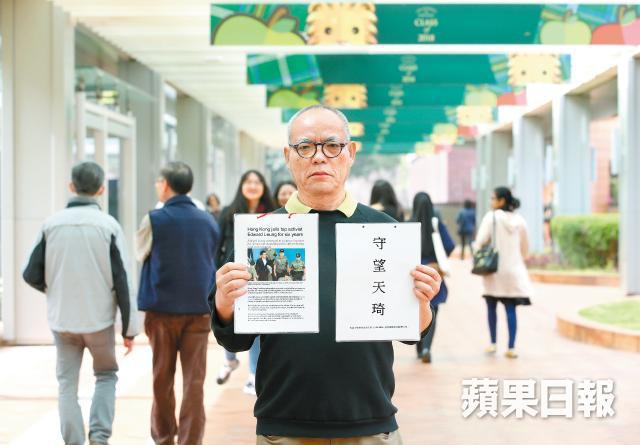 約了回港的吳呂南到其母校香港大學做訪問。他提早到達大學站,在人來人往的大堂,將一塊過了膠、寫着「守望天琦」四個大字的紙牌舉在胸前,惹得地鐵職員兩度走來,查問所為何事。