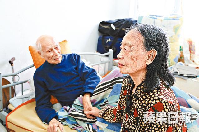 【本報訊】執子之手,與子偕老,94歲的關伯與87歲的鳳婆婆廝守67年,近月關伯出現腦退化,雙腳無力需長期卧床,出入亦要坐輪椅。負責照顧丈夫的鳳婆婆亦自身難保,她因股骨退化,「行三步要唞兩步」,眼見老伴健康惡化,鳳婆婆想過生與死的問題,「如果佢走先,我咪好靜,得一個人,好淒涼,每次諗到都流眼淚,喊一場」。