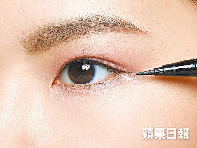 2.於貼近睫毛部份畫上極幼細的眼線,大眼睛女生甚至可在眼尾只畫一小截眼線即可,讓雙眼更炯炯有神。