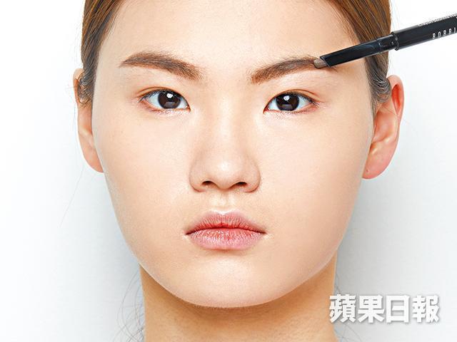 1.因為省去了濃郁的眼妝,眉妝就變得很重要,利用眉毛增加眼神銳利度。先用眉筆勾勒出利落的形狀,再用眉粉暈塗出自然的眉形。