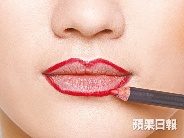 4.利用唇線筆勾畫唇形,使唇形更凸出,讓唇妝成為整個妝容重點。