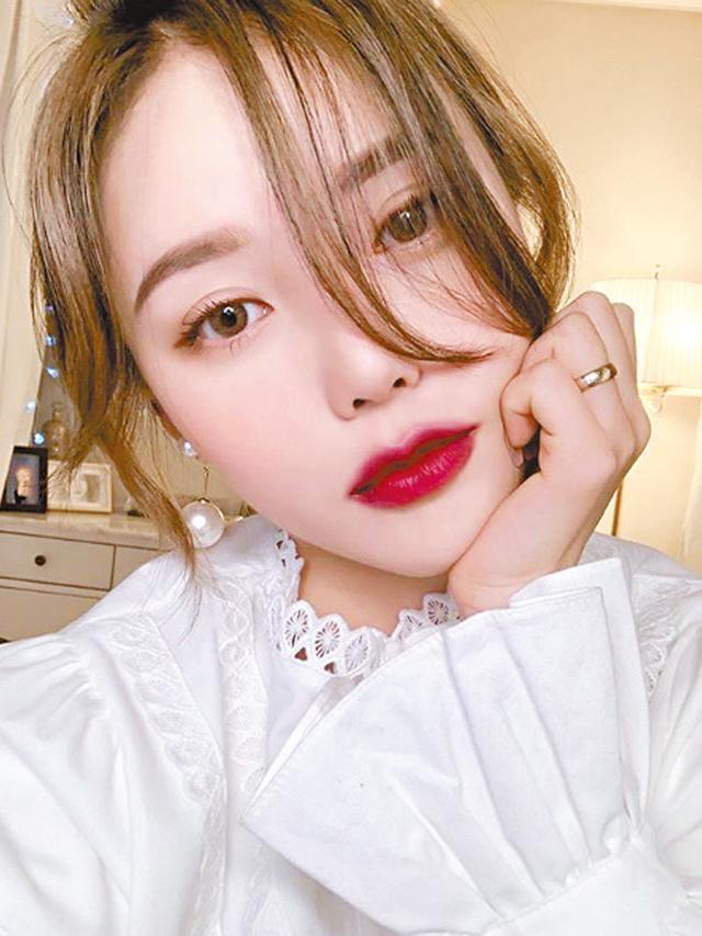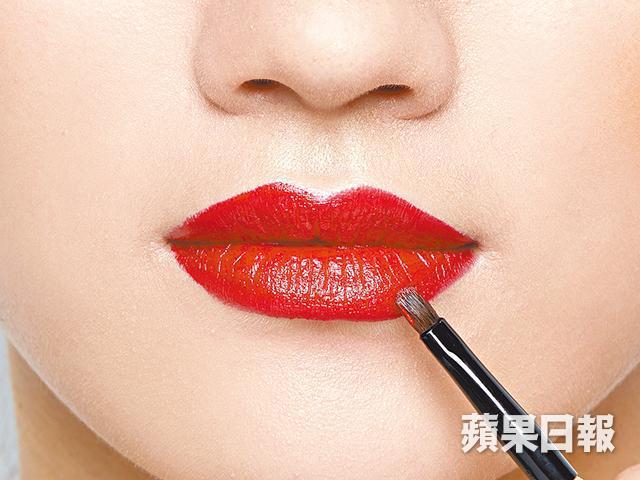 4.最後塗上水潤感十足的唇彩,以高光澤度凸出唇妝。