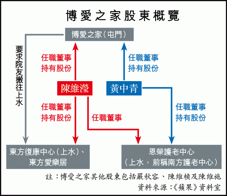 據了解,男院友要搬去的河上鄉「東方復康中心」,是兩幢三層高村屋,由博愛之家股東陳維瀅持有。院舍地點偏僻,位於上水河上鄉路,要在上水轉搭小巴再步行約5分鐘才到達。有該中心男院友透露,院舍最多可住40多人,曾聽過將有10位博愛之家院友遷至;有院友亦透露,被逼遷時有發生,只能聽從院舍決定。