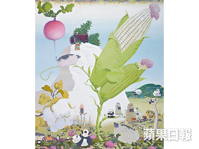 眼前作品《美好承諾》就是畫這種反差命運,卻用天真無邪的憧憬表達。童話其實講毛主席的大躍進,社會主義建設運動最後變成大饑荒,中外學者普遍估算至少有兩三千萬人餓死。