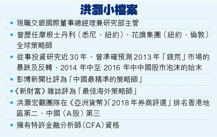 有「中國最精準策略師」之稱的交銀國際董事總經理兼研究部主管洪灝接受本報專訪時表示,現時港股牛市剛形成,就算大市回調亦應該不斷搵機會逢低買入,並非將手上的東西賣掉。他亦不認為A股「過熱」或有爆破風險,並指「中國市場就從來都無慢牛」。