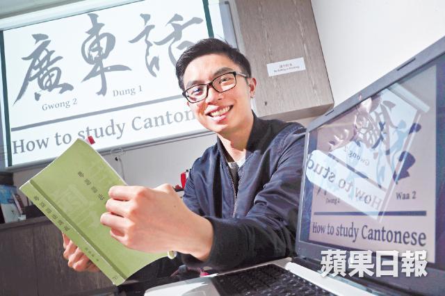 說得有如語言學者般頭頭是道,但原來這個21歲的科大商科生也是自去年夏天,有韓國朋友向他請教廣東話後,他才開始鑽研起自己的母語來。一整個暑假,他不停到圖書館遍尋典籍,再憑一己之力消化、整合再繙譯教材:「睇嘅過程有好多唔明嘅地方,書又會有錯或講得唔夠清楚嘅地方,就要睇多幾次,再喺第二本書搵返啲蛛絲馬迹,半年後先可以將我睇到同諗到嘅嘢寫出嚟。」