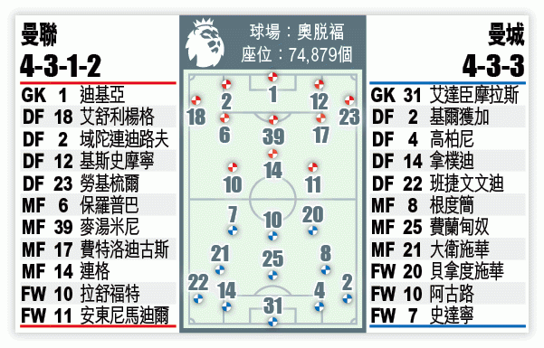 至於曼城去年幾近以無敵姿態奪冠,但正是在季尾衝刺階段,作客奧脫褔在領先2球下反輸2:3,該仗曼聯中場保羅普巴更梅開二度閃耀球場,且曼聯目前仍有爭四的目標,打吡戰就算先失球亦不會輕易放棄,相信各位球迷今仗有望看到一場入球騷。