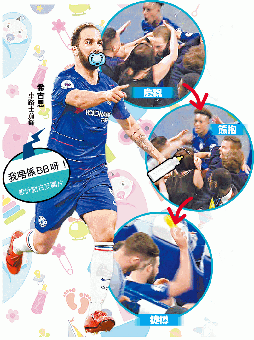 車路士前鋒希古恩,星期一英超就打破五場聯賽入球荒,射入幫車仔一度反超前2:1嘅一球,去到場邊慶祝時仲俾個身形豐滿嘅女球迷,雙手攬實個頭落心口,不過車仔最後主場都係俾般尼逼和2:2,踢多場下以1分超越阿仙奴升上第4位,但前四席位一啲都唔穩!