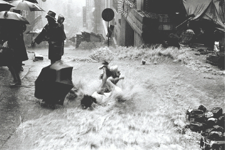 是光輝的起點,也是命運的原點。陳橋的年度最佳新聞圖片,是一張女子在豪雨中失足的黑白照片,慢快門捕捉到動感的瞬間。拍攝地點是西營盤正街,是橋叔十多年前賣魚的地方。橋叔回憶稱:「我住喺高街,啲街坊話嗰度(正街)斜路,落大雨時好多人跌低,咁咪去影囉,等咗好耐先影到。」