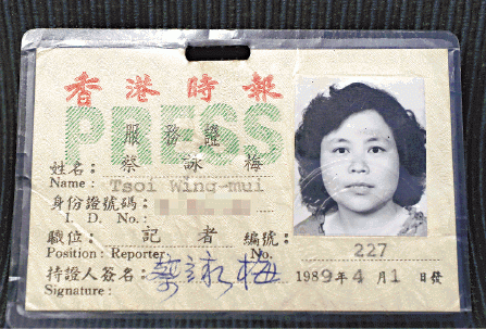 結果一做14年,直至《開放》停刊。現為作家及獨立中文筆會成員,蔡詠梅說,今日國民黨高層訪港訪大陸「交朋友、做生意」,但30年前,國民黨與共產黨不相往來。「你看我當年在北京傳真到香港刊登的稿件,都用北平而不是北京,因為當時台灣根本不承認北京是首都,認為南京才是」。正式打開缺口的,是1989年4月,台灣新聞局宣佈開放兩岸採訪,適逢財政部部長郭婉容歷史性出訪大陸,她順理成章成為隨團記者。「那次,其實是《香港時報》首度派員到大陸採訪」。