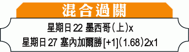 同日另一場,B組有墨西哥U20鬥日本U20,首戰墨西哥以1:2不敵意大利,出線陷於劣勢;日本則成功逼和厄瓜多爾,不過全場比賽幾乎被厄軍圍攻,加上攻力一般,今仗鬥人腳較佳的墨西哥難看好,即使受讓平/半亦難撐,捧上盤。