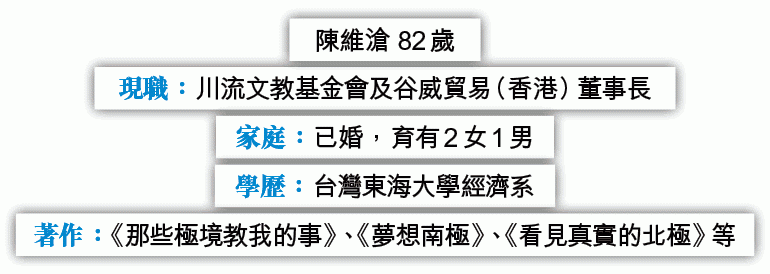 給我這初體驗的人是82歲不老探險家陳維滄,我因為他的探險人生前來採訪。他走訪三極的次數──北極11次、中極(西藏)7次、南極4次──恐怕居台灣人之首;極境走遍後,近年又屢屢探訪信仰伊斯蘭教的異域。他因為經商成功,而有了走遍世界各地的經濟餘裕,這一點對我等或許不難企及,然而離開之前,需要捨棄,他在50歲的人生高峯退下舞台的勇氣,恐怕無人能敵。