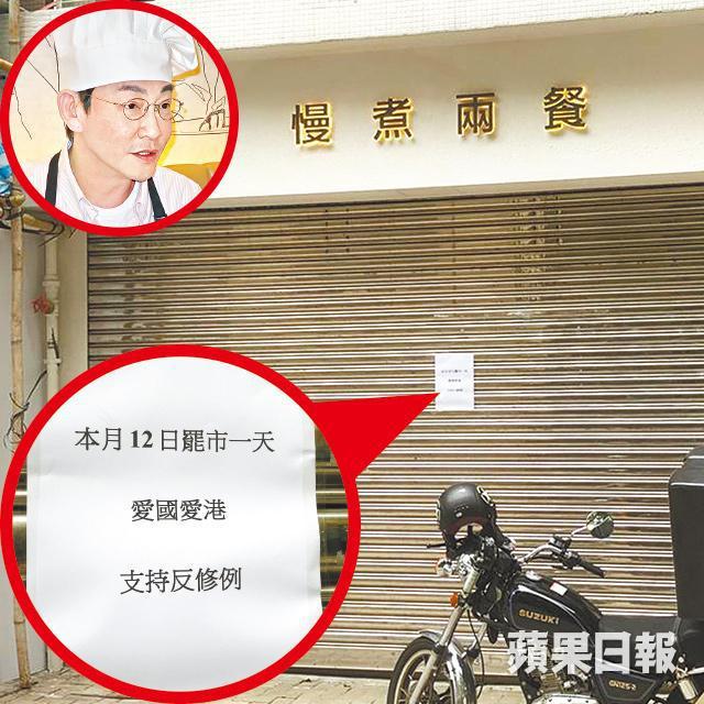 「旺蟹」吳啟明於中環開設餐廳「慢煮兩餐」昨日也響應罷巿,他於店外鐵閘貼出告事:「本月12日罷巿一天,愛國愛港,支持反修例」。而黃宇詩在中上環和銅鑼灣開設的兩間內衣店昨日也落閘,她在官方fb宣佈:「今日好懶,sorry,唔想開工,兩店休息一日。thank you 多謝曬(晒)!」其後黃宇詩回覆《蘋果》時表示:「沒有甚麼回應,係今朝有啲唔舒服。」