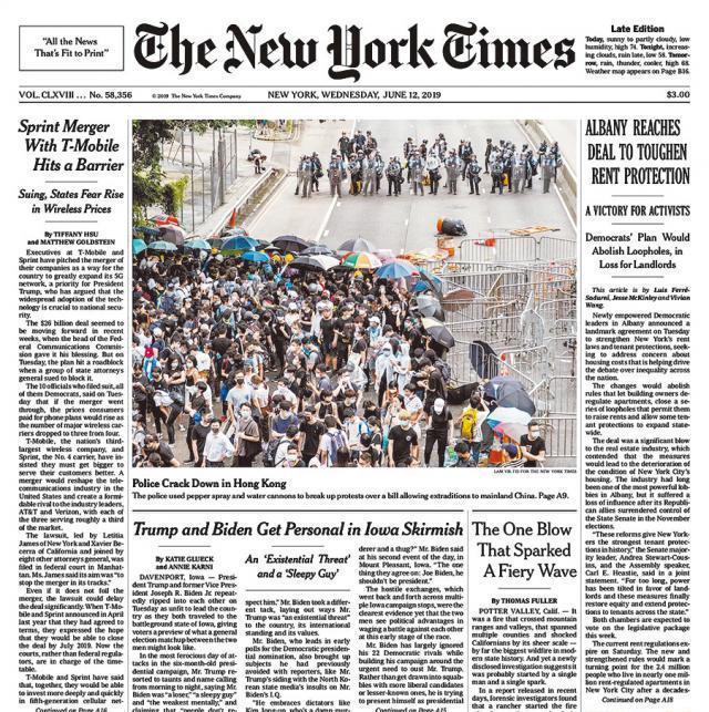 至於美國《紐約時報》和英國《衞報》均以文字實時更新報道,前者特別報道特首林鄭月娥接受電視專訪,「從未覺得於心有愧」;後者則介紹警察用的催淚彈為英製N225型,並留意到在警民衝突後,秘密通訊程式網上搜尋增加。而日本放送協會(NHK)昨早亦作頭條報道,但更新不算多。