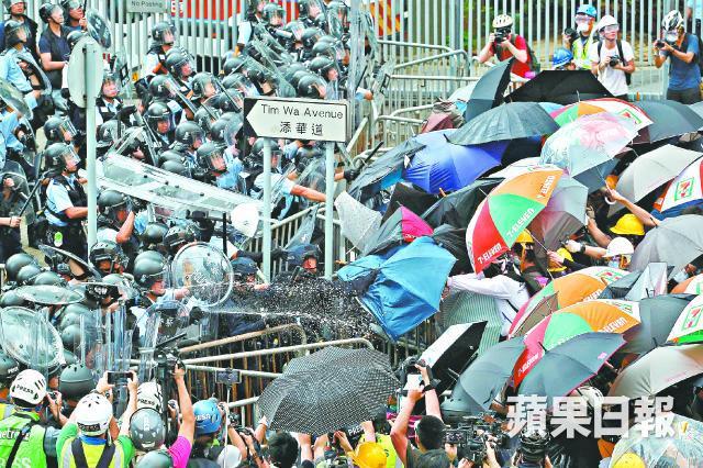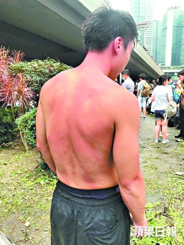 澳門記者陳嘉俊昨在facebook指,採訪時遇上警民衝突,一度沾上胡椒噴劑,他到緩衝區處理傷勢時脫下頭盔、口罩和眼鏡等裝備,救護員幫忙清理。但未幾身旁記者高呼快走,警員趕至陳面前,用胡椒噴劑噴向他,令其背部及手部受傷。他中椒後隨即躲入示威區,獲示威者協助急救。