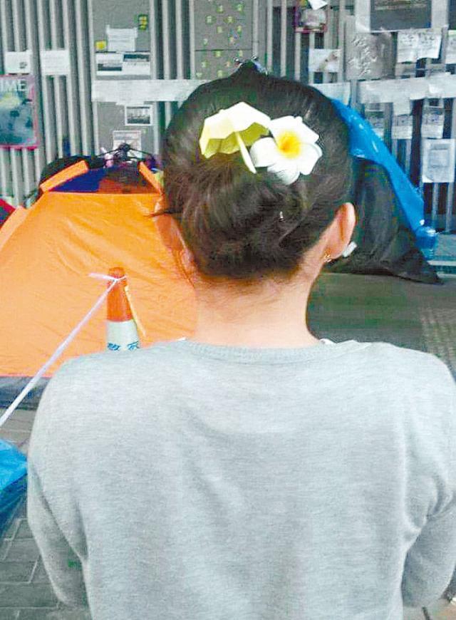 她的學生都約了朋友一起罷課,而不是約老師。但她聯絡一個學生時,發現對方只有一個人,找不到朋友,她就花了一小時去找這個學生,要學生跟着自己,總比一個人安全。然後,他們在大致和平的抗爭裏,四圍走着,一起吃午飯,一段時間留在中信大廈,因為他們想知道事態發展,而整個佔領區只有這裏的網絡收得最好。
