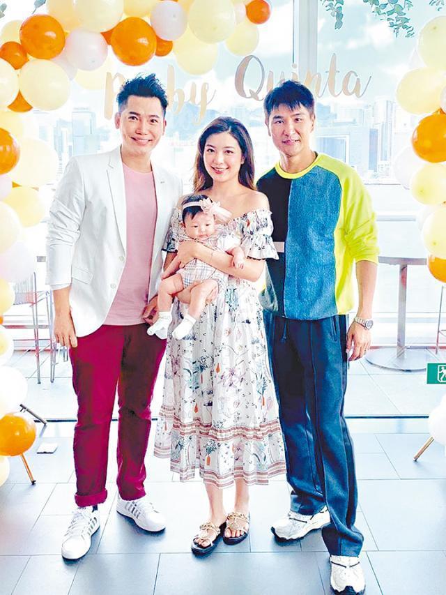 陳展鵬與單文柔去年10月結婚,囡囡今年4月出世,取名Quinta(小豬比)。兩夫婦昨日為女兒擺百日宴,有份出席的黃建東在Ig上載跟陳展鵬一家三口合照及留言:「小豬比百日宴,祝Quinta BB健健康康、快高長大、最緊要大個咗孝順父母!」相中的單文柔抱着囡囡,小豬比穿上淺色格仔衫及戴上頭飾,樣子很可愛。