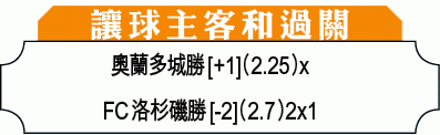 另一場由費城聯主場對奧蘭多城,兩隊三天前才在後者主場交鋒,雖然費城聯當時贏3:1,但奧城也因該場敗仗而務必加以提防。況且,費城聯近期在主場表現欠突出,捧奧蘭多城不會遭對方一周內雙殺,[+1]要「客勝」。(球賽編號:星期六23;now638、有線654及無綫myTV Super301台明日7:00am直播)