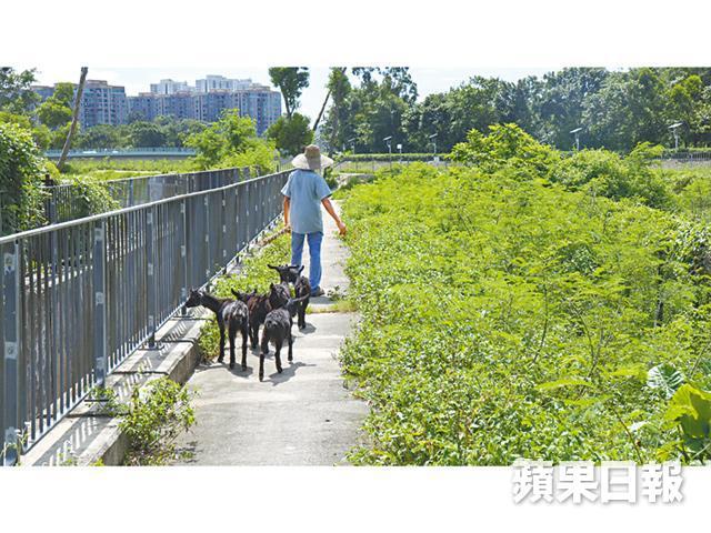 華叔是上水石湖新村的牧羊人,石湖新村附近遍佈屋苑大廈,67歲的他偏偏在此養羊十多年。羊棚鐵閘一開,羊群如流水般湧出小路,跑到梧桐河畔,邊叫嚷邊吃草。華叔在後方把羊糞掃到一旁,有五隻小羊緊跟在他的身後,牠們正是早前被野狗咬死那隻母羊的遺孤。
