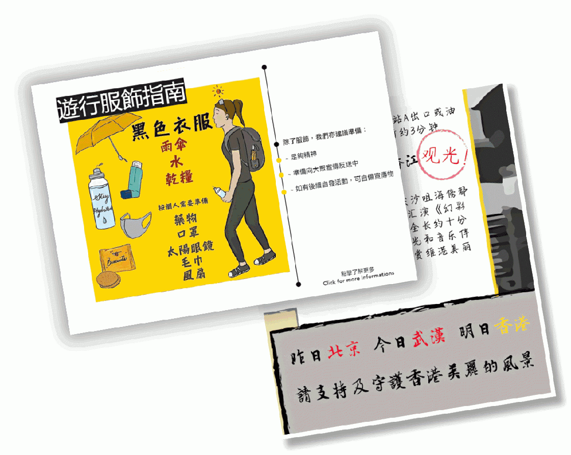 另外,廣東道一間手袋店的負責人陳小姐透露,近日已有遊客詢問是否周日有遊行,她指今日照常開舖,不太擔心生意受損。另一報紙檔檔販張先生則表明如遊行爆發衝突,「會即時收檔離開」。不過,經營持牌流動汽水檔的溫先生決定今日休息,以避開遊行人多擠擁。