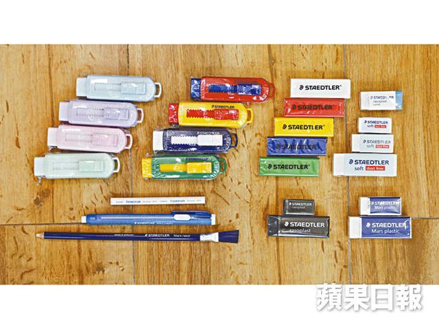 擦膠是施德樓王牌產品之一, Mars Plastic Eraser更是最受家長歡迎。每逢書展,家長們忙着為子女九月份開學而籌謀,不少人會買一整盒裝有三、四十件的擦膠,以作未來一年所需。對小學生來說,他們從來不會「把擦膠用完」,只會「把擦膠弄丟」,「因為小朋友經常唔見擦膠,所以我們的小擦膠又比大擦膠更受家長歡迎。」