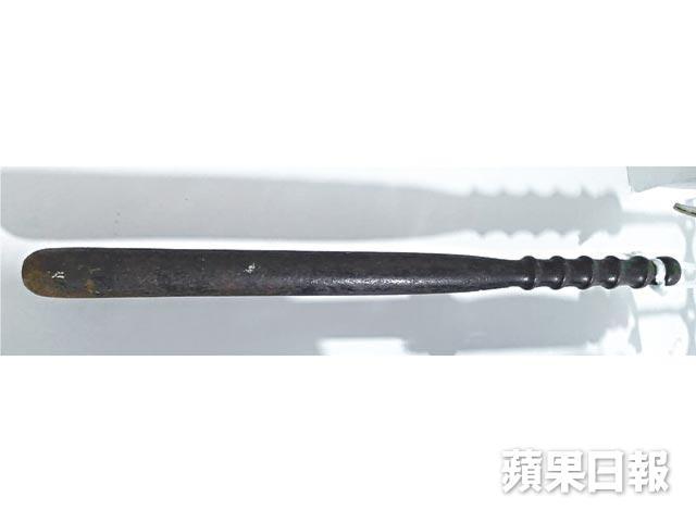 掛在大廳的防暴用警棍已退役,相距一個甲子,看到電視上警察一棍棍毆示威者,劉銓登顯然是百般滋味在心頭。