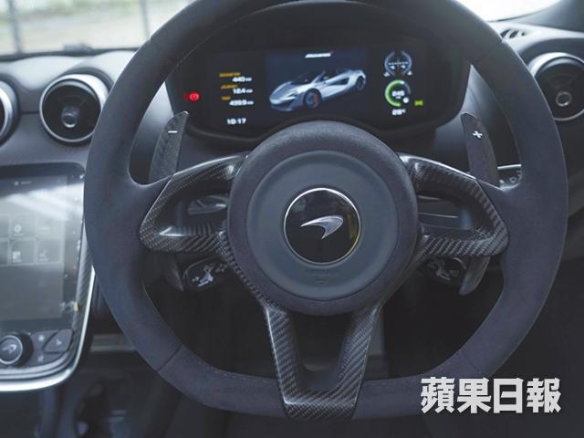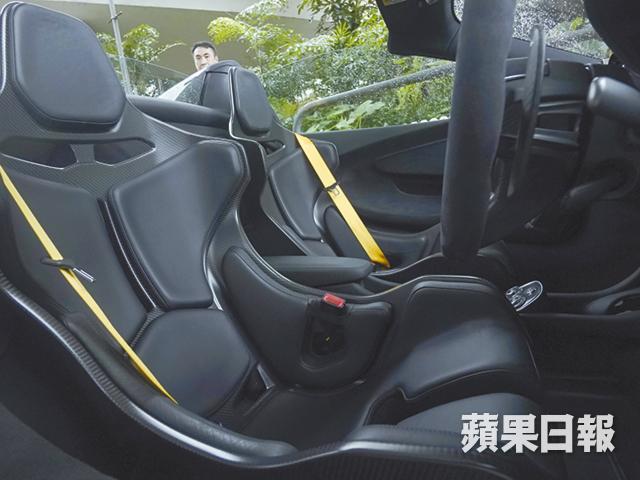 是次測試的示範車,添加了很多額外配備,如前擾流、側裙、後導流器、側鏡等都變為碳纖維,而黑色輪圈、藍色卡鉗和鮮黃色車身亦屬額外選配,車價即由$4,097,100激增至$4,790,500。當中最矚目的,莫過於那張Senna特別版專用桶座,全碳纖製,造型非常震撼,背墊、坐墊逐塊黏上,製作精美,結構也十分輕巧,每張只重8kg,不過價錢亦非同小可,連同黃色安全帶索價13萬(連稅價),乘坐感確實出眾,肩膀、腰肢、下盤包得好緊,有利開快車或落場真正鬥車時穩定身體,不過追求功能便要有所犧牲,首先座椅真的極包身,稍為肥胖一點都未必坐得落,其次是進出難度大大提高,穿短裙女士上落車更尷尬非常,想姿態優雅地坐入駕駛艙,都要有一定身形和身手。