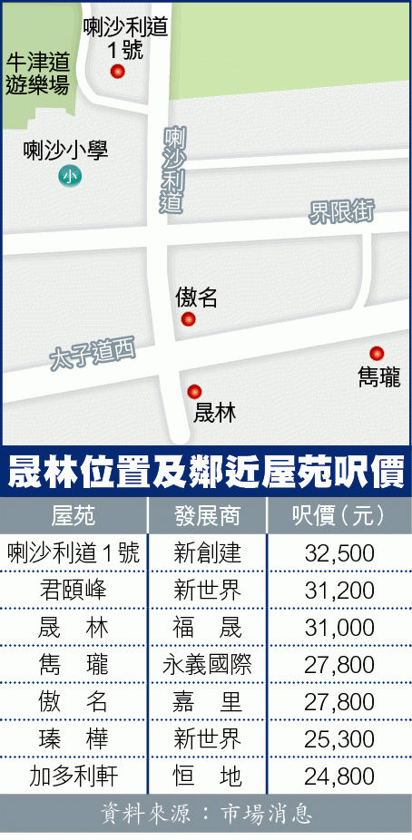 【本報訊】新盤市場火速升溫,發展商叫價進取。九龍下半年首個全新盤、內房福晟國際(627)旗下何文田晟林昨開價,首批折實平均呎價高見31,271元,較新世界(017)及恒地(012)合作的何文田窩打老道瑧樺、今年4月推出的首張價單均價24,308元,貴近三成,成為今年九龍最貴新盤。
