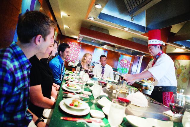 船上亦有豪華特色餐廳,包括法式餐廳、日式鐵板燒、意式餐廳、巴西燒烤、美式扒房,有超過15種餐飲選擇。主餐廳之一的Azura每日有獲獎廚師精心烹調現代和傳統菜餚,另一間餐廳Le Bistro French Restaurant亦提供法式風情美膳,彷彿置身於巴黎酒館一樣。