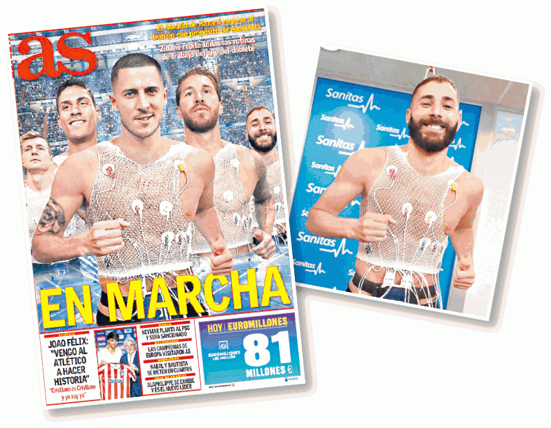 皇馬球員度過一個短暫假期後,禮拜一已經陸續返到皇馬基地做體測,而西班牙傳媒《阿斯報》都喺報紙封面刊登咗皇馬球員大堆頭迎接新球季嘅相,仲將一億歐元(約8.8億港元)新兵夏薩特放喺正中間位置,但眼利嘅網民好快發現到,原來夏神個頭係拼接咗落去隊友賓施馬嘅身體上面,可能大家都奇怪,堂堂《阿斯報》點解要惡搞夏神呢?夏神個真身去咗邊呢?