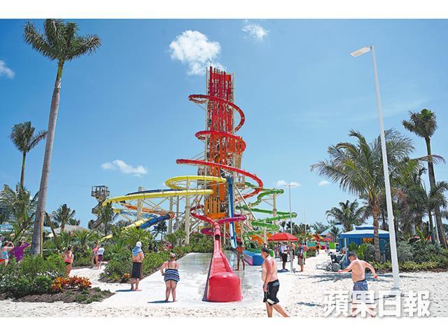 Thrill Waterpark水上樂園,是可可灣其中一個重點設施,入場費是每人75美元(約585港元)。園內總共有13條滑水梯,當中達135呎的Daredevil's Peak滑水梯,為全北美洲最高的滑水梯。記者用了接近兩小時來排隊,終於登上Daredevil's Peak滑水梯,最後以時速29公里,短短30秒就滑完整條滑梯。雖然等候時間長,但記者認為依然值得一試。至於另一條必試滑梯Screeching Serpent,其設計原意是玩家先站在透明體驗艙等待,倒數後,腳下的擋板就會打開,最後玩家會體驗到無重力狀態下的極速下墜。整個過程不到10秒,往往驚魂未定就已經着地了。若對滑水梯不感興趣,可以轉戰加勒比海面積最大的人造浪池,或者於同是最大的淡水泳池內暢泳。不想下水的話,亦可以自付65美元(約507港元),坐氦氣球升上450呎高空賞景。