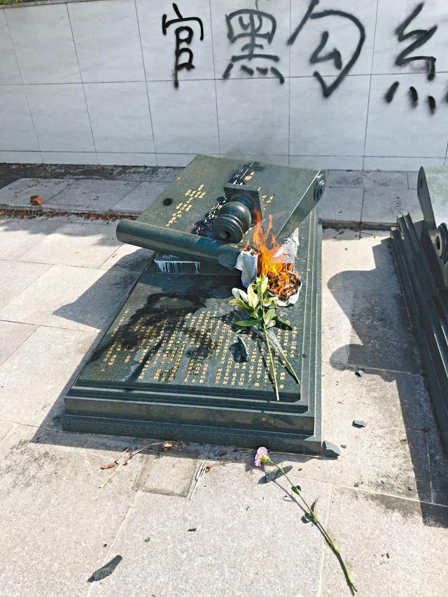 【本報訊】立法會議員何君堯被質疑勾結鄉事派,策動元朗白衣人襲擊市民,風波至今仍未平息。繼周一有人自發圍堵何君堯位於荃灣的議員辦事處,昨午其天水圍和屯門議辦外再有示威者聚集。同一時間,何雙親於良田村的墳墓亦遭損毀和塗鴉。何斥連串行動人神共憤,呼籲破壞者自首,又點名批評網上討論區傳播恐嚇訊息。