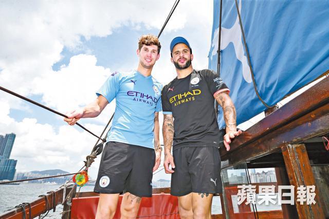 曼城後防兩位英格蘭國腳史東斯及基爾獲加,昨晨乘坐具香港特色的帆船遊維港,在船上接受《蘋果》訪問時指要贏歐聯甚為艱難,但全隊均以此為目標。