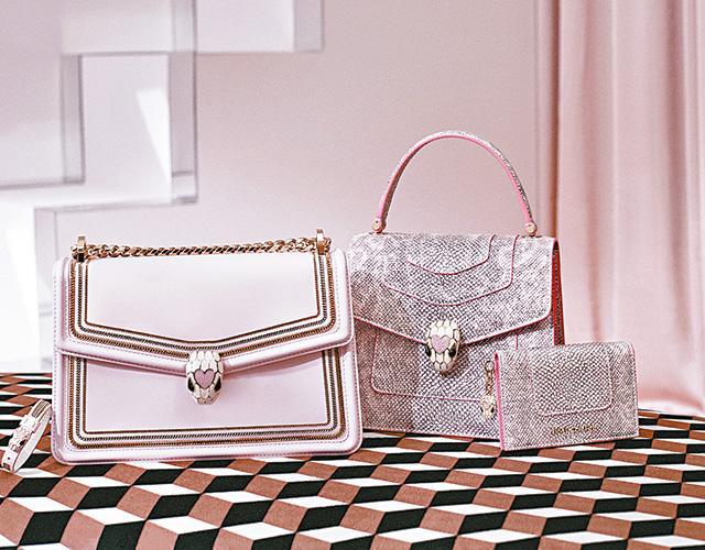 除了紅色,粉紅色亦是七夕的必備顏色,BVLGARI推出兩款分別用上小牛皮和水蛇皮的粉紅手袋禮盒套裝。全粉紅的設計讓少女心爆發,加上Divas' Dream七夕限量版頸鏈,鑽石、珍珠貝母和玫瑰金的組合完美結合,讓人怦然心動。