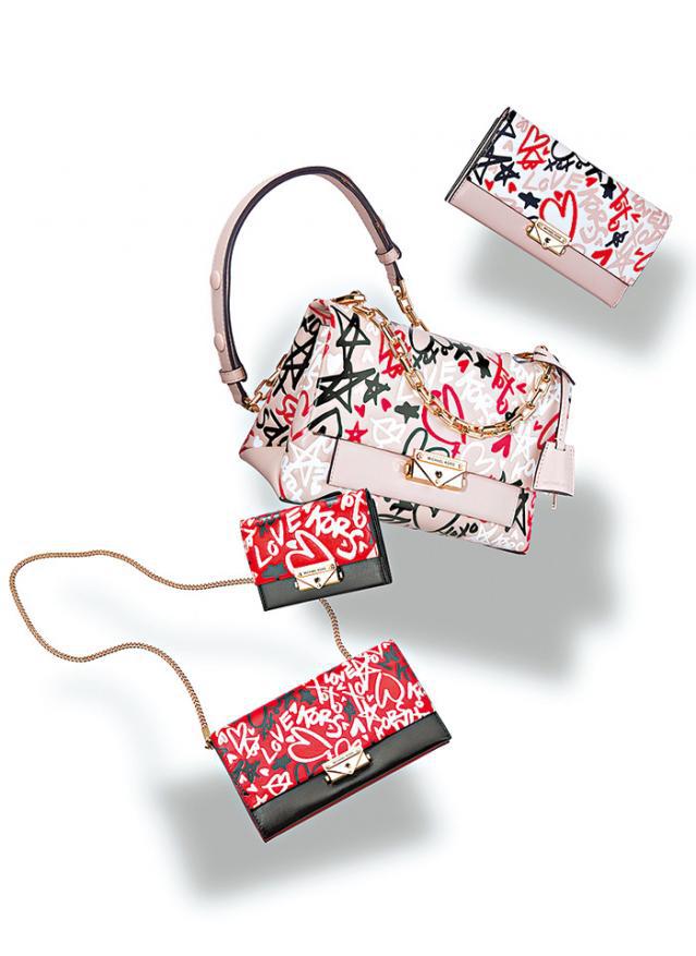 Michael Kors以塗鴉傳遞愛的訊息,將心形和星星圖案融合「XOXO」及「LOVE」等標語,調皮感十足,設計由服飾、手袋到手錶、珠寶等一應俱全,總有一款合心水。