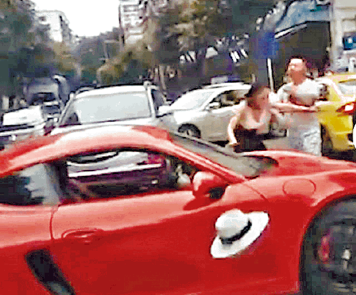 內地網絡瘋傳一段影片,在重慶渝北區兩路附近,一名駕紅色保時捷的女子與另一男司機口角,女子出手掌摑男司機,其後兩人在街頭互摑。內媒昨報道,女子從事土石方生意,年輕時就性格囂張,她丈夫背景「很硬」。重慶市公安局昨晚終於證實,該女子的丈夫身份是某派出所所長。