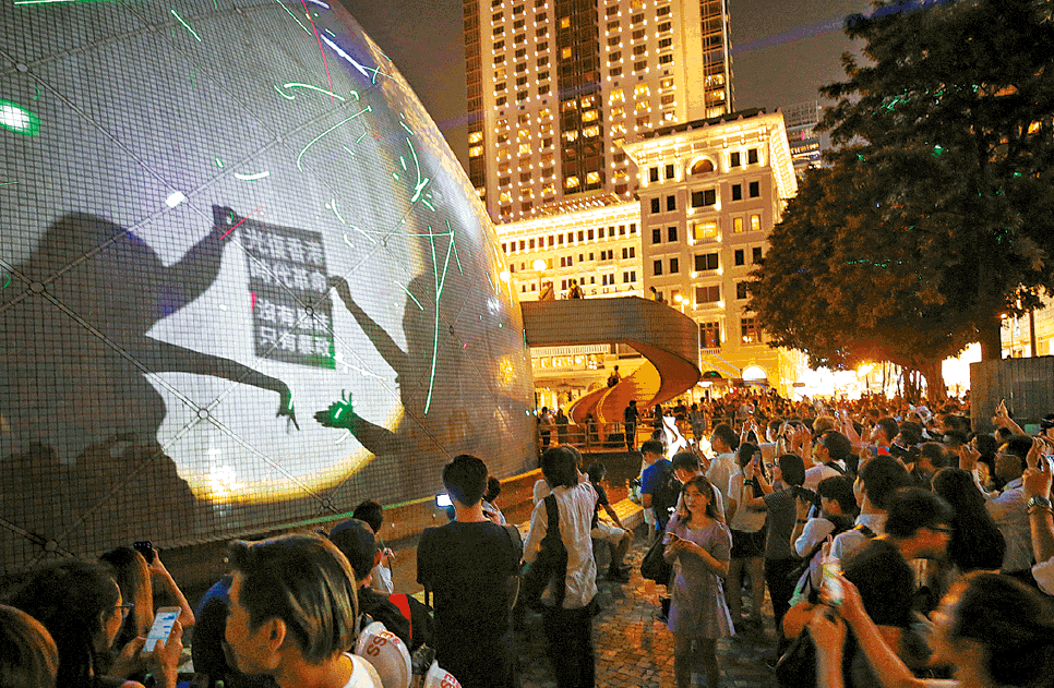 聚集的市民自攜不同的觀星筆,向太空館的白色外牆照射及打圈,令本來入夜後一片漆黑的外牆,被眼花繚亂的紅、綠、藍燈光閃耀,如上演一場平民版「幻彩詠香江」。有人不時提醒參加者,不要把觀星筆照向附近半島酒店及喜來登酒店,以免影響遊客。由於現場有人播起《星球大戰》音樂,及已故歌星羅文的名曲《激光中》,市民不時報以歡呼和掌聲,令現場氣氛猶如演唱會。