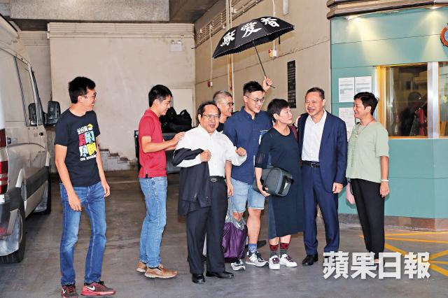 同案獲判緩刑的朱耀明牧師、陳淑莊、鍾耀華等昨亦到庭聲援。戴清瘦不少但精神不俗,他滿面笑容地步出羈留室,即與太太和兒子相擁,現場掌聲不斷,支持者高呼「香港人加油」、「Benny加油」等口號。