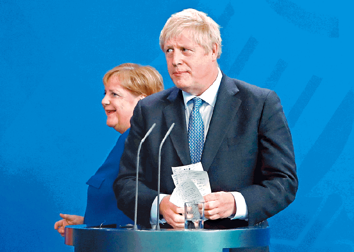 英國首相約翰遜上任後的「處男」外訪前日開始,最大目標似乎是說服歐盟兩大龍頭——德國及法國的領袖重商英國脫歐協議,其中德國總理默克爾態度較為開放,指英歐仍有可能在30日內找出避免脫歐後英國與愛爾蘭出現硬邊界的方法,毋須實施約翰遜要求從現有協議刪除的「最後擔保方案」,令約翰遜驚喜;但法國總統馬克龍其後重申歐盟不會與英國重商協議。
