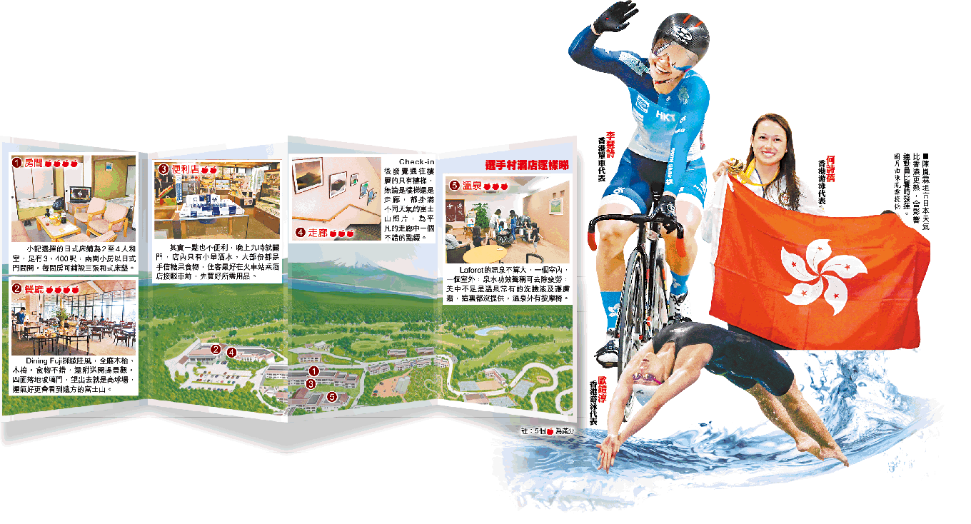 【東奧倒數300日】沒有花巧的裝潢,亦不是五星級數,但勝在夠大、夠近、有溫泉,說的是位於伊豆的修善寺拉佛樂特溫泉度假村(Laforet),將是明年東京奧運場地單車的衞星選手村,距離伊豆鑊場只需半小時車程,屆時香港「女車神」李慧詩及一眾車手都會入住,唯一擔心是酒店內的高球場照常營業,存在保安問題。