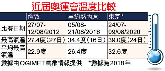【東奧倒數300日】四年一度的東京奧運會約在一年後開幕,最近香港不同運動項目的運動員也陸續獲得奧運參賽資格,希望之後有更多好消息傳來。不過,今年的東京天氣連日來錄得歷史上最高氣溫,對於一年後的奧運會有影響嗎?