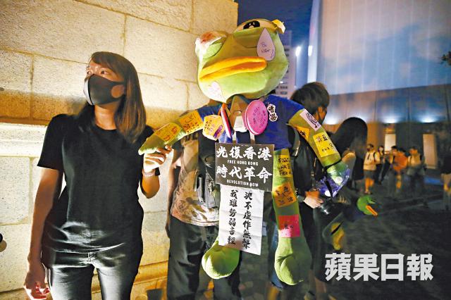 【本報訊】由尖沙嘴鐘樓到旺角警署,由趣致的Pepe到悲情的太子站,網民發起的「9.30 Pepe心心和你拖」行動,估計有萬人參與。他們築成人鏈,延綿約四公里,表達五大訴求,並呼籲今日上街「賀國慶」。有參與者批評警方濫暴沒完沒了,又炮轟特首林鄭月娥只顧返大陸祝酒,無心面對人民。