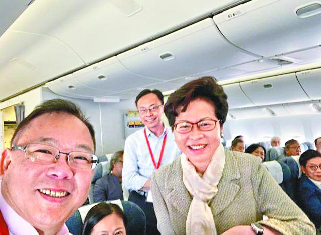 【本報訊】特首林鄭月娥昨以團長身份率領240人政商界代表團到北京參加十.一建政活動,代表將乘坐專機赴京,當中除了包括官員、政商界人士外,更有反送中運動中力撐港府及警方的深藍人士,而國家主席習近平昨出席中共建政70年招待會,致辭時亦避談反送中事件,僅重申要繼續全面準確貫徹「一國兩制、港人治港、高度自治」方針。